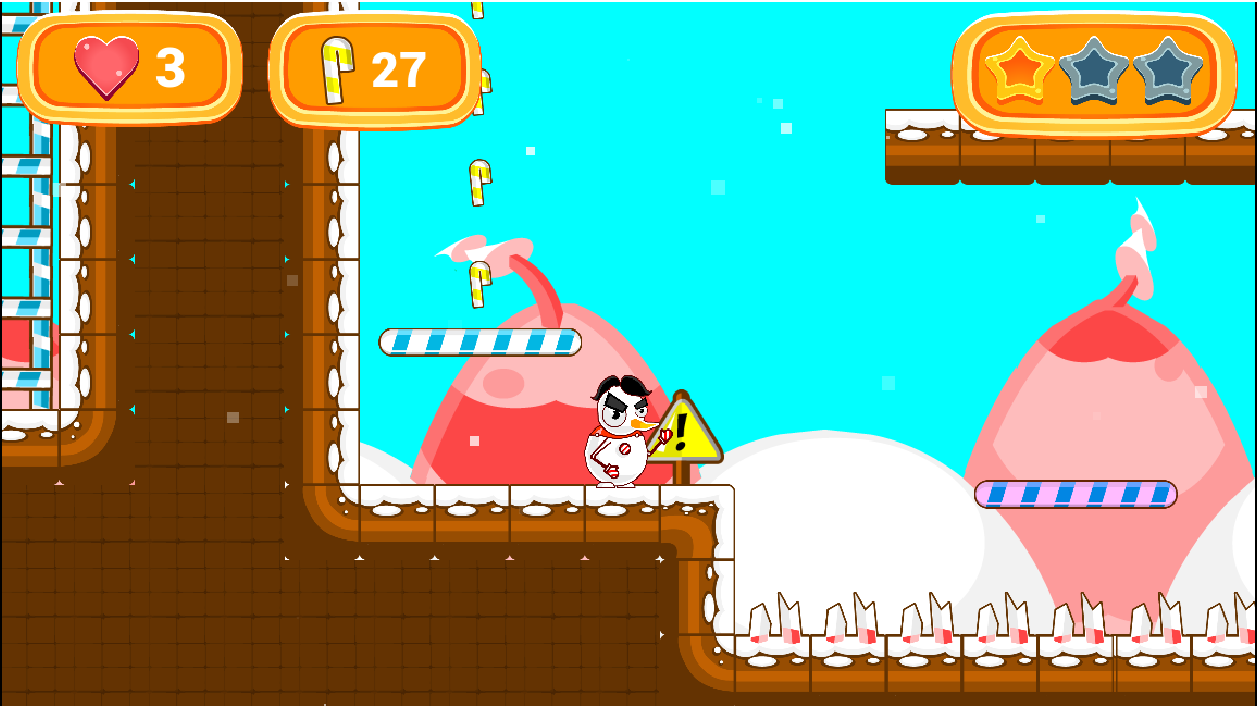 A simple platformer game where Mr. Snowman used to offer some candy to his friends during Christmas period. But this time, he can't find any of his candy and now, he becomes angry. Help him find his candy to calm down.